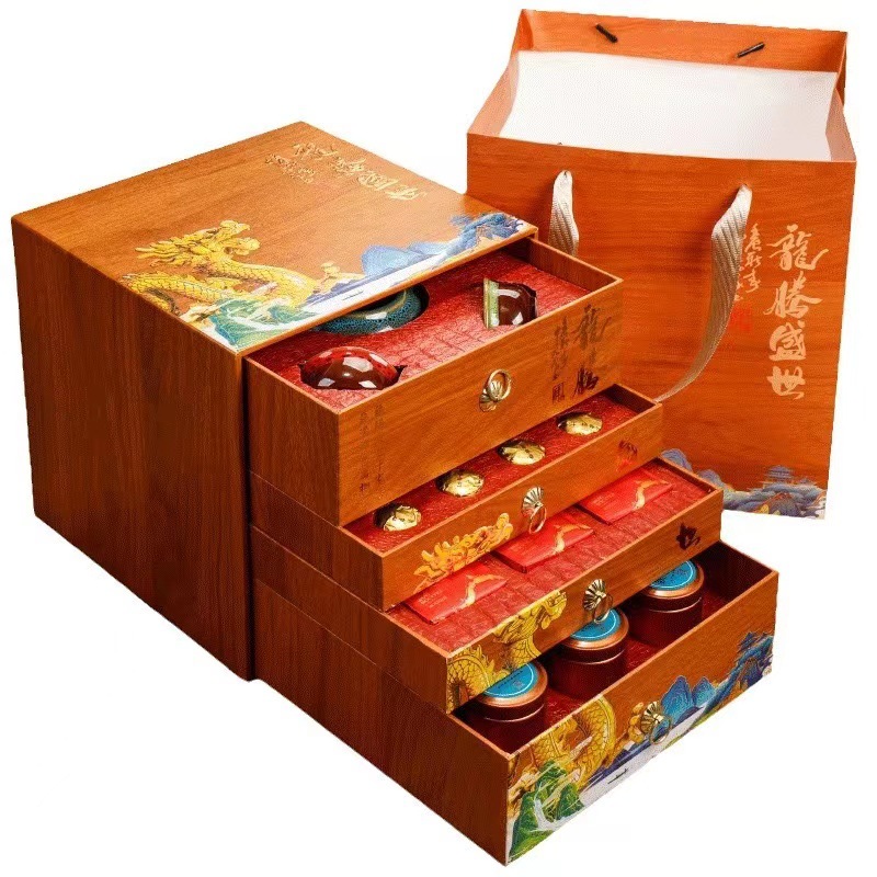 3.Bộ hộp quà tặng 4 tầng Trà Rồng Rắn Lên Mây 2025 gồm :