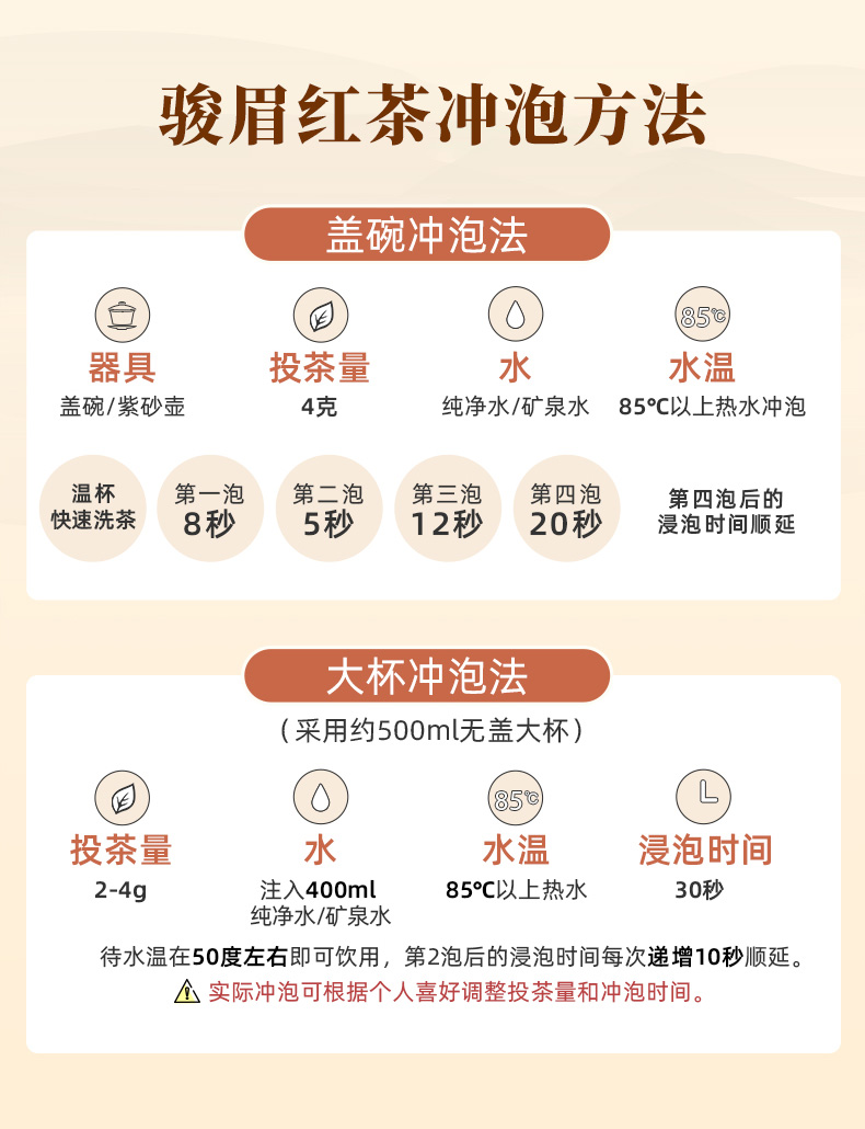 Hồng trà Bama Wuyi Junmei ngọt ngào và thơm mùi hoa và trái cây.Trà khô monge như lông mày,thắt chặt và đen tinh tế.