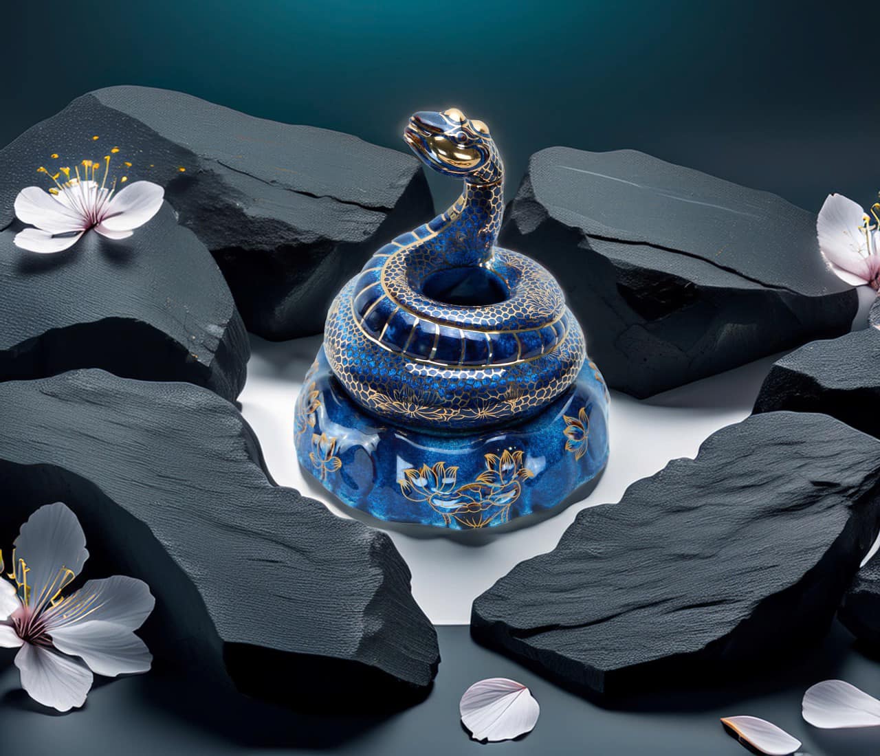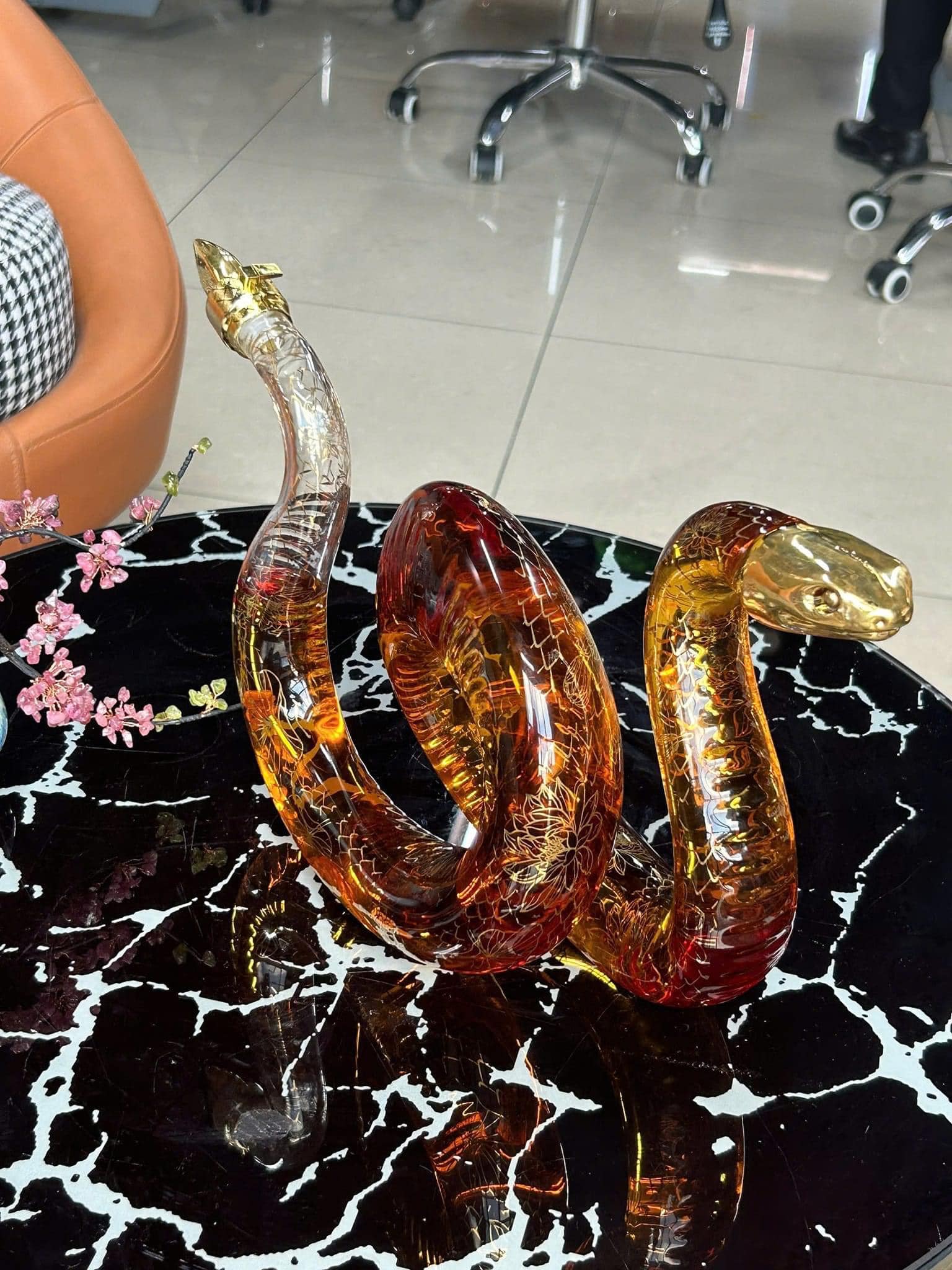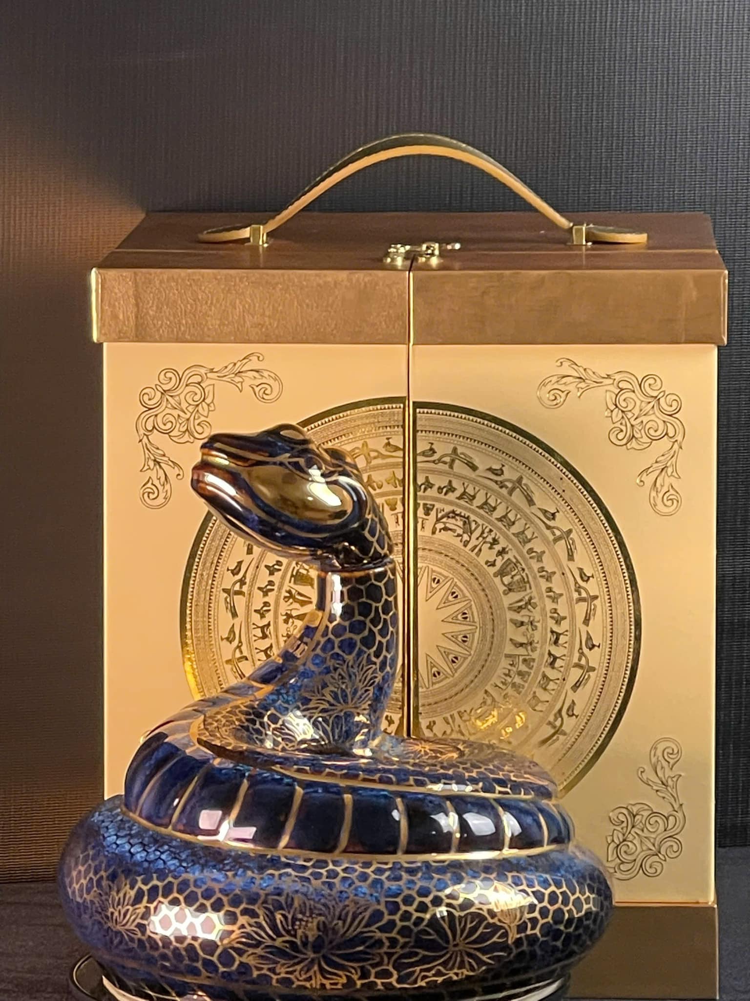 Họa tiết vảy rắn mạ vàng: Các chi tiết vảy rắn được mạ vàng tỉ mỉ, tạo điểm nhấn sang trọng và nâng tầm giá trị cho sản phẩm.
